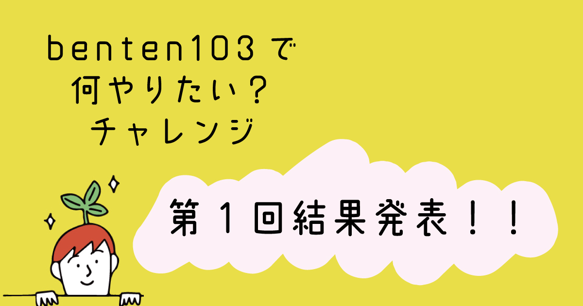 第1回『benten103で何やりたい?チャレンジ』の審査通過した企画はこちらの4つです!これから主催者の皆様と企画を煮詰めて、3ヶ月先を目処に開催を目指します。応援よろしくお願いします!