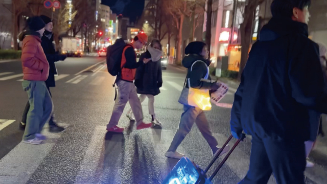 ネオントランクやネオンバッグを持って歩く一行。どこにいるかすぐわかり便利です😊。通行中の車にも見えやすいので安全!何より、光っているものを携行するワクワク感があります。
